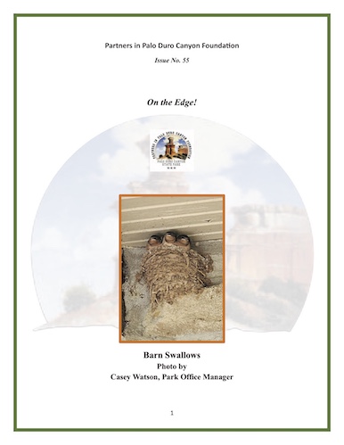 Partners In Palo Duro Canyon Newsletters September 2025 June 2025 March 2025 December 2024 September 2024 June 2024 March 2024 December 2023 September 2023 June 2023 March 2023 December 2022 September 2022 June 2022 March 2022 December 2021 September 2021 June 2021 March 2021 December 2020 September 2020 June 2020 March 2020 December 2019 September 2019 June 2019 March 2019 December 2018 September 2018 June 2018 March 2018 December 2017 September 2017 March 2017 December 2016 September 2016 June 2016 March 2016 December 2015 September 2015 June 2015 March 2015 December 2014 September 2014 June 2014 June 2013 March 2013 December 2012 September 2012 June 2012 September 2009 Palo Duro Canyon State Park » Park Alerts « 2025 Photo Contest The Canyon Gallery & Visitors Center Photo Gallery Newsletters Palo Duro Canyon Webcam Fees & Facilities Entrance Fees Campsites Cabins Group Facilities Mack Dick Pavilion Things To Do Hours Maps Weather FAQs Events Calendar Volunteer For the Canyon Gallery For Texas Parks & Wildlife Contact Palo Duro Canyon State Park – or – The Canyon Gallery 2024 Photo Contest Results Off-Site Links Our Facebook Page Amarillo Convention & Visitor Council Canyon TX Chamber of Commerce Old West Riding Stables Palo Duro ZipLine Palo Duro Trading Post Panhandle Plains Historical Museum Sad Monkey Mercantile Texas Master Naturalists Panhandle Chapter Texas Musical Drama Texas Parks & Wildlife Privacy Policy